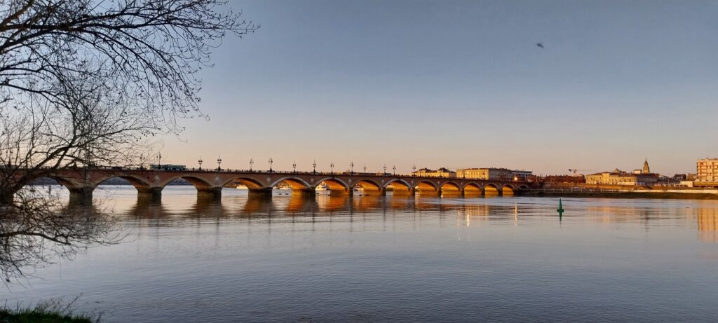Du plus fort, du plus loin dont tu te souviens, depuis ton arrivée à Bordeaux dans les années quatre-vingt dix du siècle dernier, le pont de pierre, souvent croise ton chemin lors de tes pérégrinations dans la ville. La première fois que tu l’as vu, seul le haut des arches était visible, résultat des grandes marées, on t’avait dit. Ce jour-là, tu réalises que les marées sont perceptibles jusqu’à Bordeaux, l’Atlantique pourtant situé près de cent kilomètres en aval.